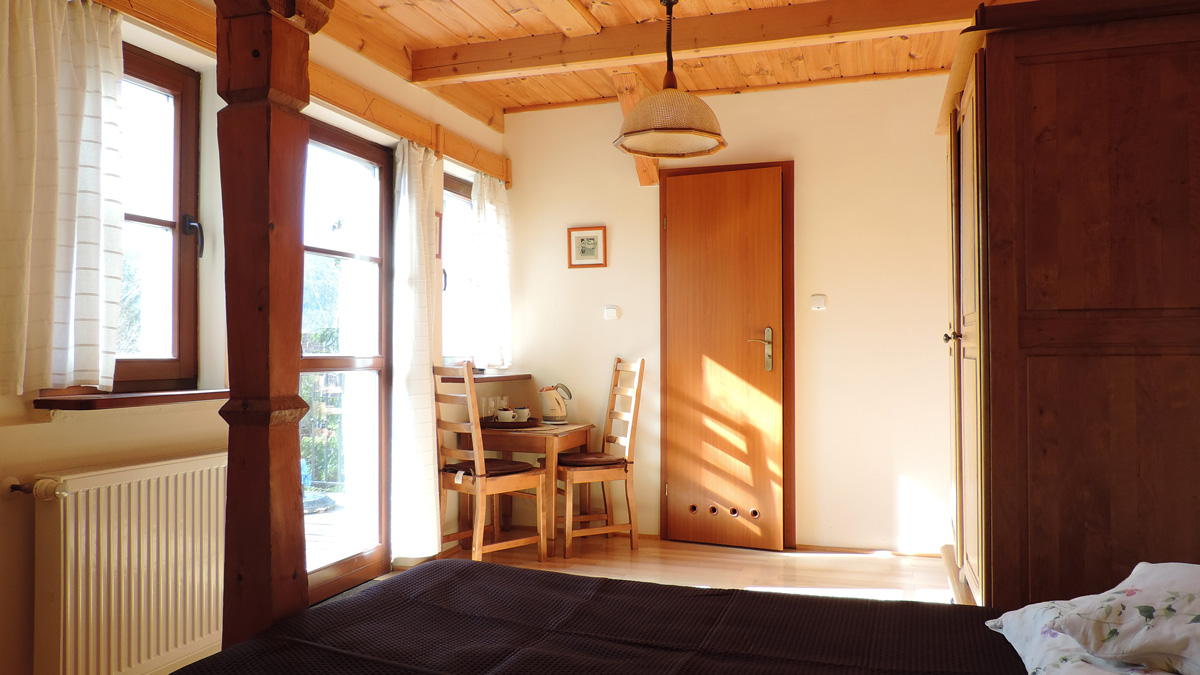 Pokój dwuosobowy o powierzchni 14,5m2 z tarasem.